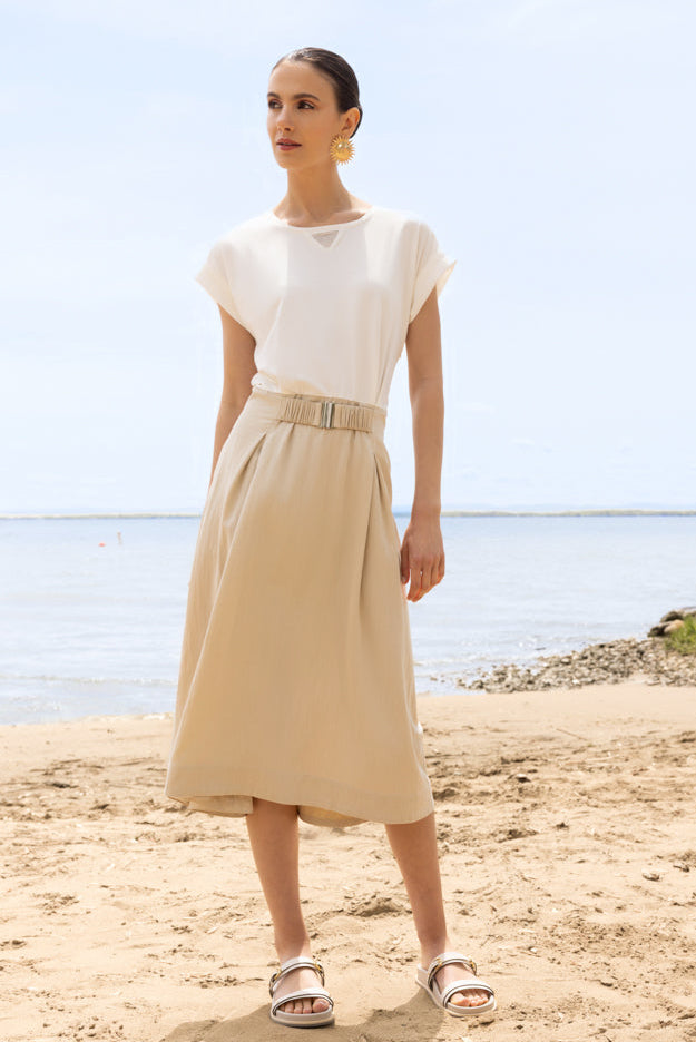 Effortless elegance meets everyday comfort in this belted midi dress. The adjustable belt cinches your waist for a flattering silhouette, while the flowing skirt moves beautifully with you. Perfect for looking polished without the fuss.