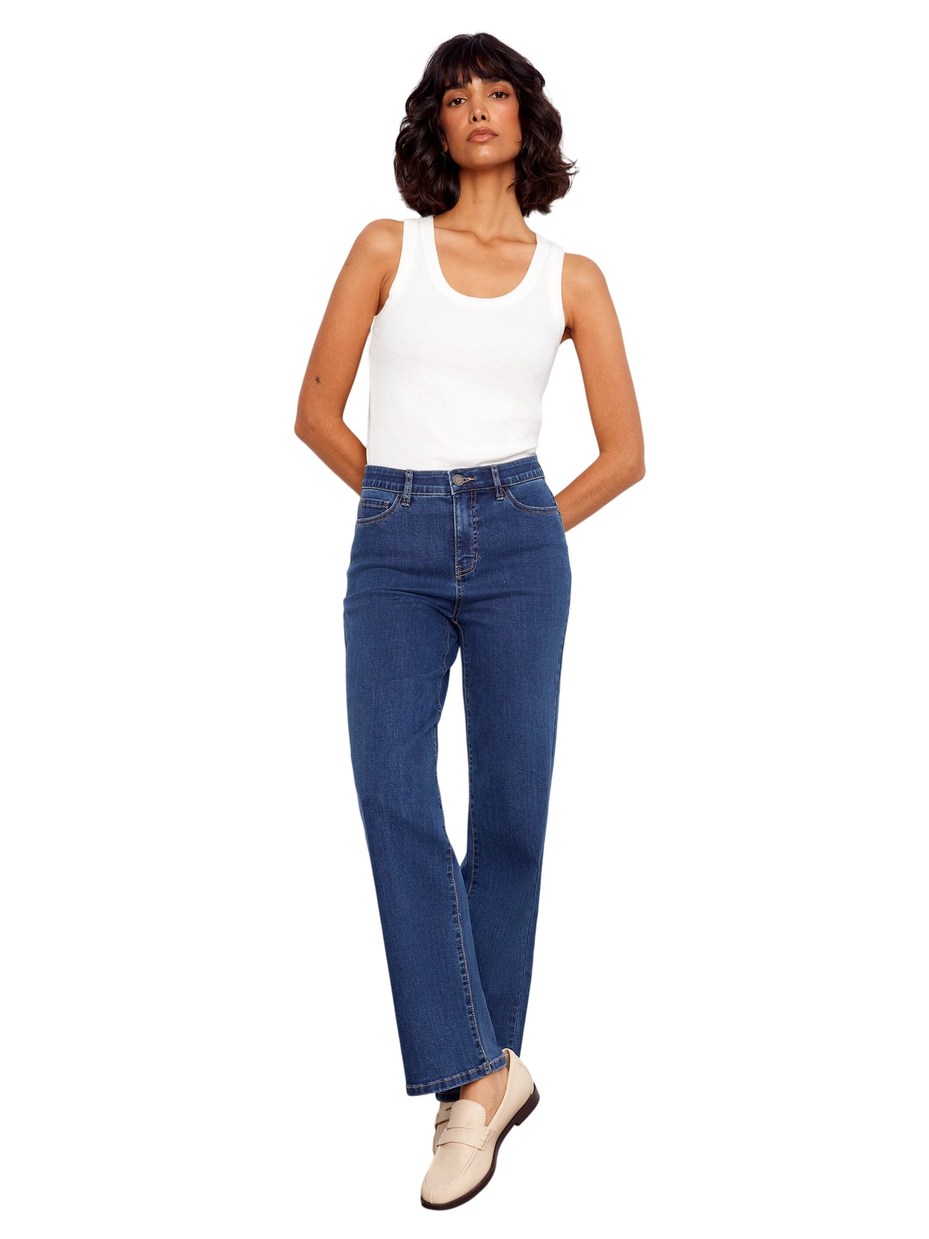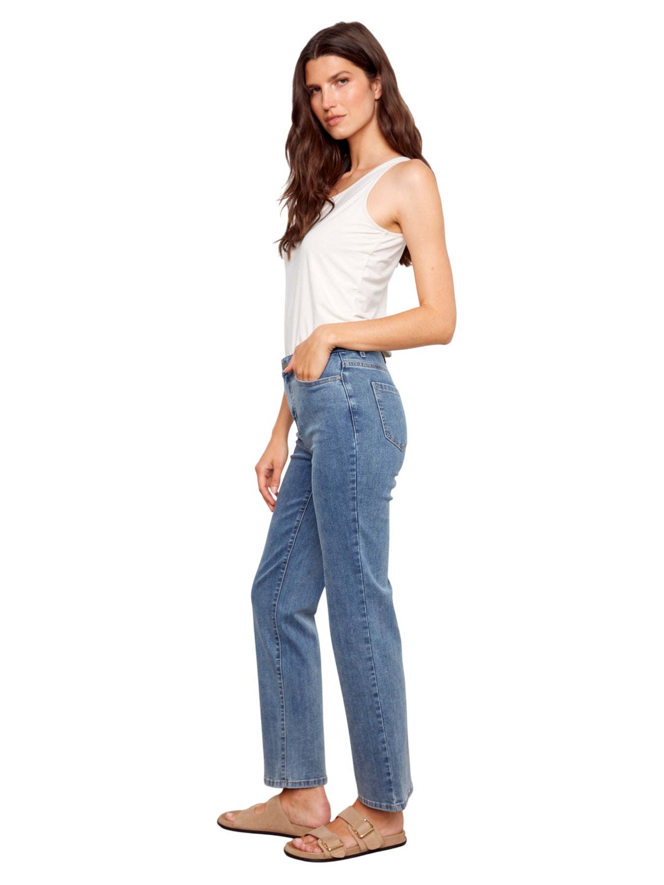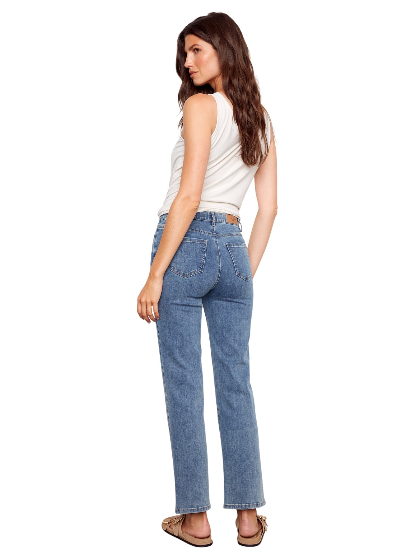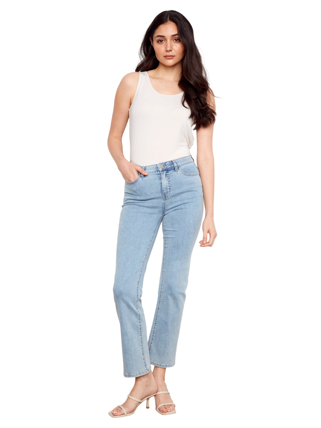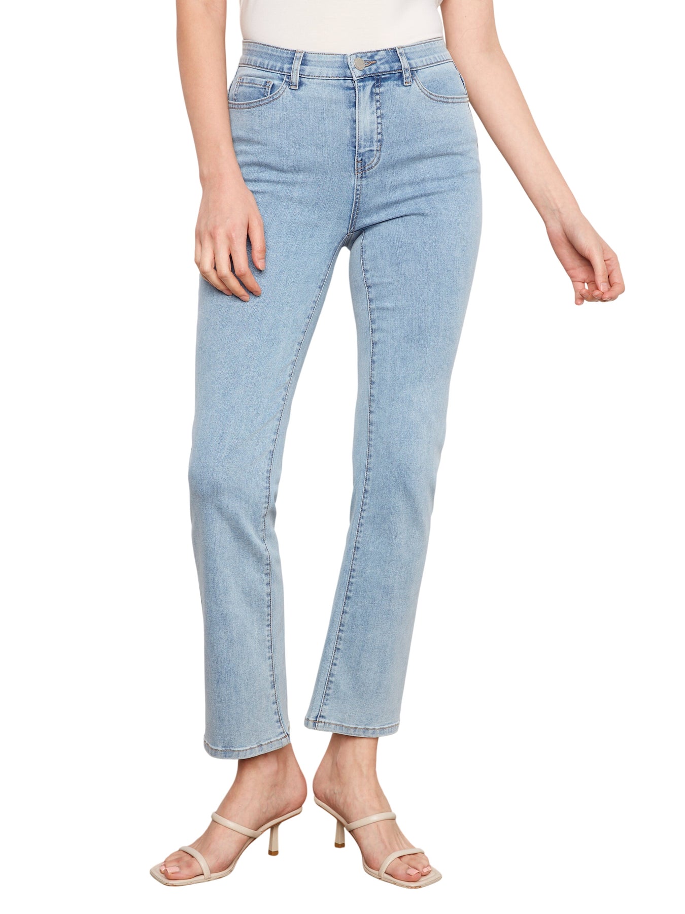Classic straight-leg jeans that refuse to fade. Light-wash denim with a mid-rise fit that sits perfectly between relaxed and refined—no fuss, no trends, just pure denim confidence. The ankle-length cut pairs fearlessly with anything in your closet, from sneakers to heels. Soft yet structured fabric keeps its shape while moving with you all day. A bold wardrobe essential that proves timeless style beats fleeting fashion every single time.
