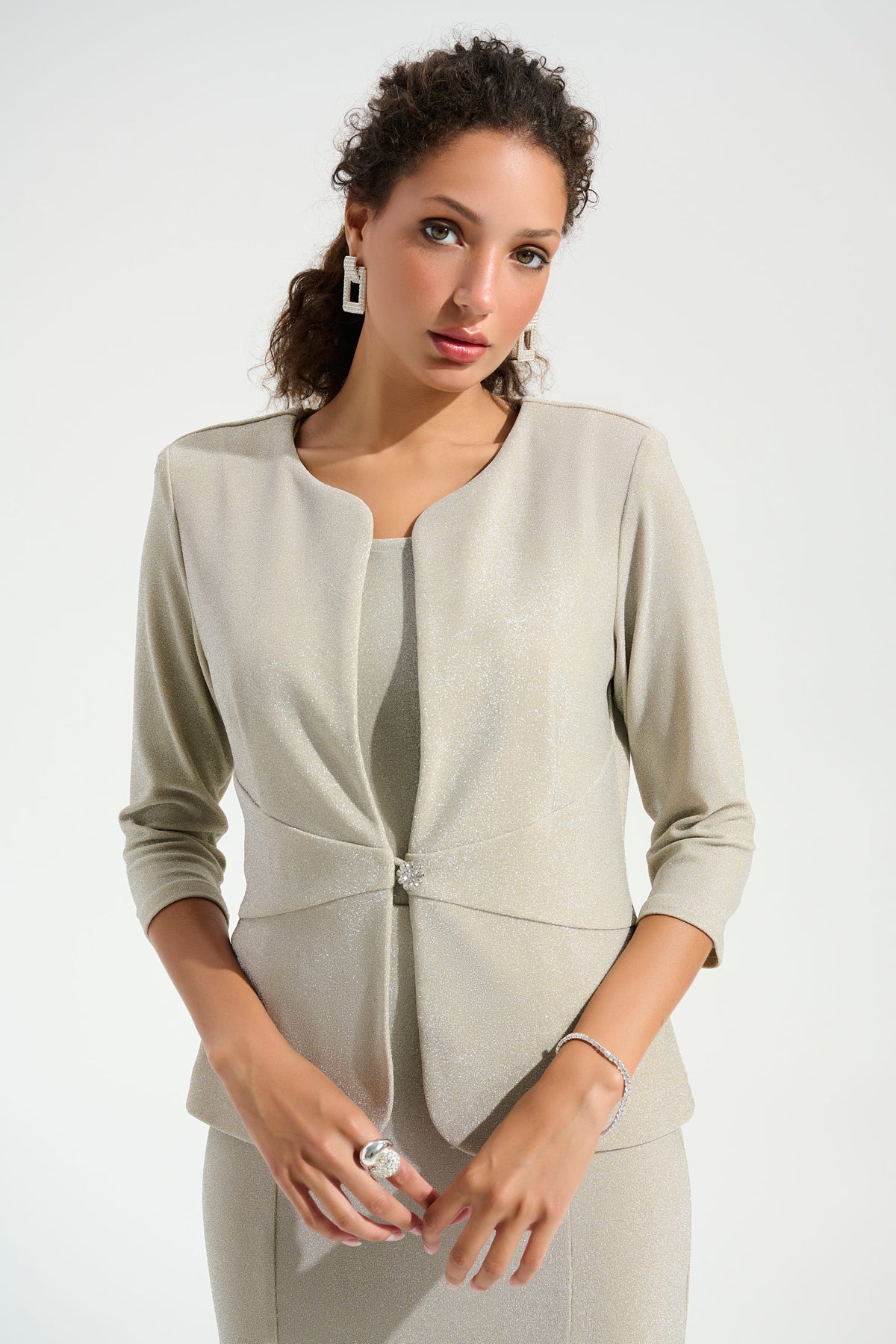 Sparkle Knit Fitted Jacket And Cami Set With Rhinestones Button Joseph Ribkoff