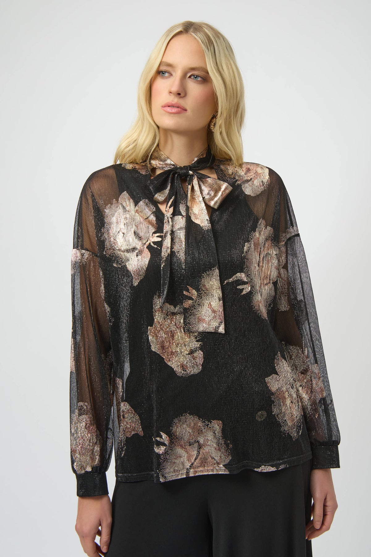 Plissé Knit Foiled Floral Top Joseph Ribkoff