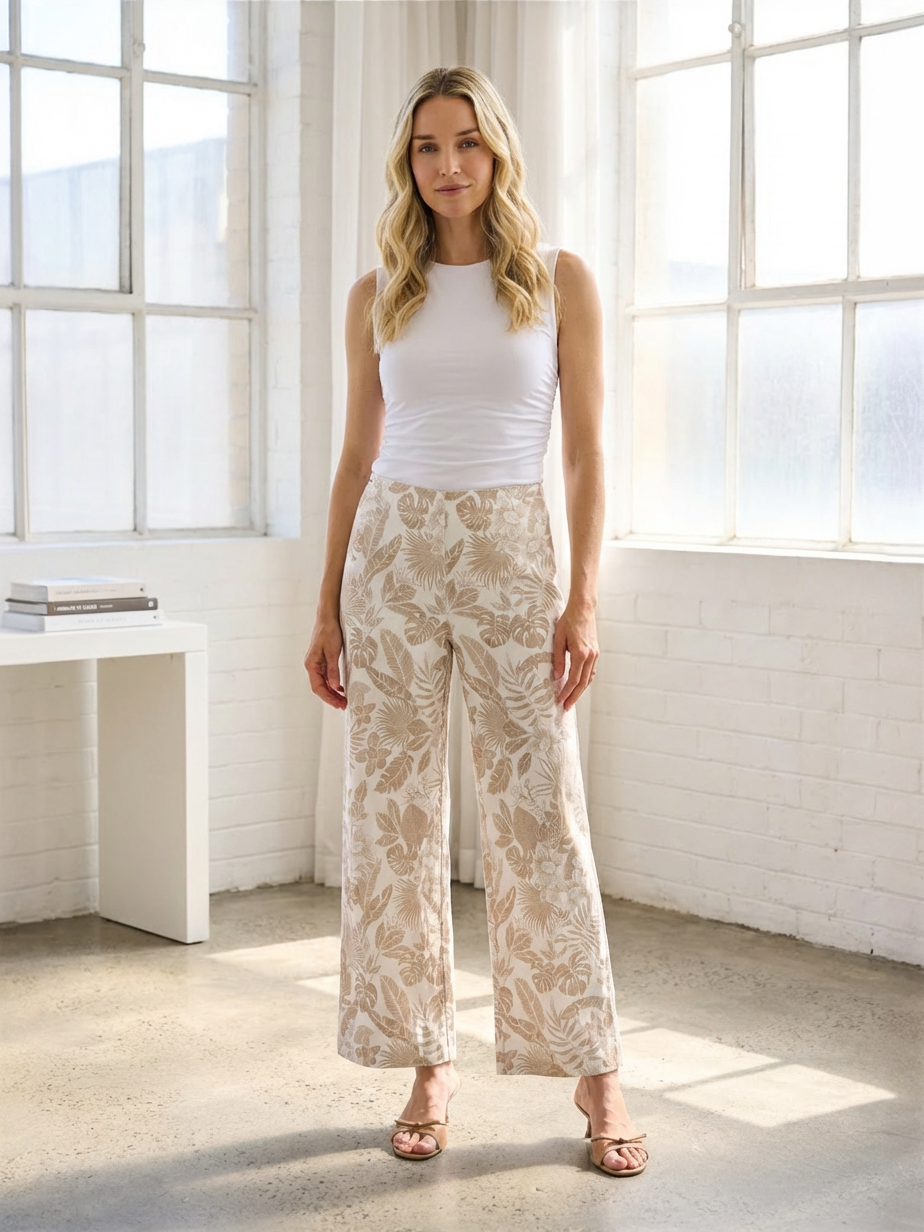 These modern cropped pants combine effortless comfort with a clean, polished look. Designed with a flattering mid-rise fit and a straight-leg silhouette, they fall just above the ankle for a fresh, contemporary feel. The smooth fabric offers structure with ease of movement, while front pockets add practical everyday style. A subtle stitched detail near the hem gives the design a refined finishing touch. Perfect for pairing with knit tops, blouses, or casual sneakers for an easy yet elevated