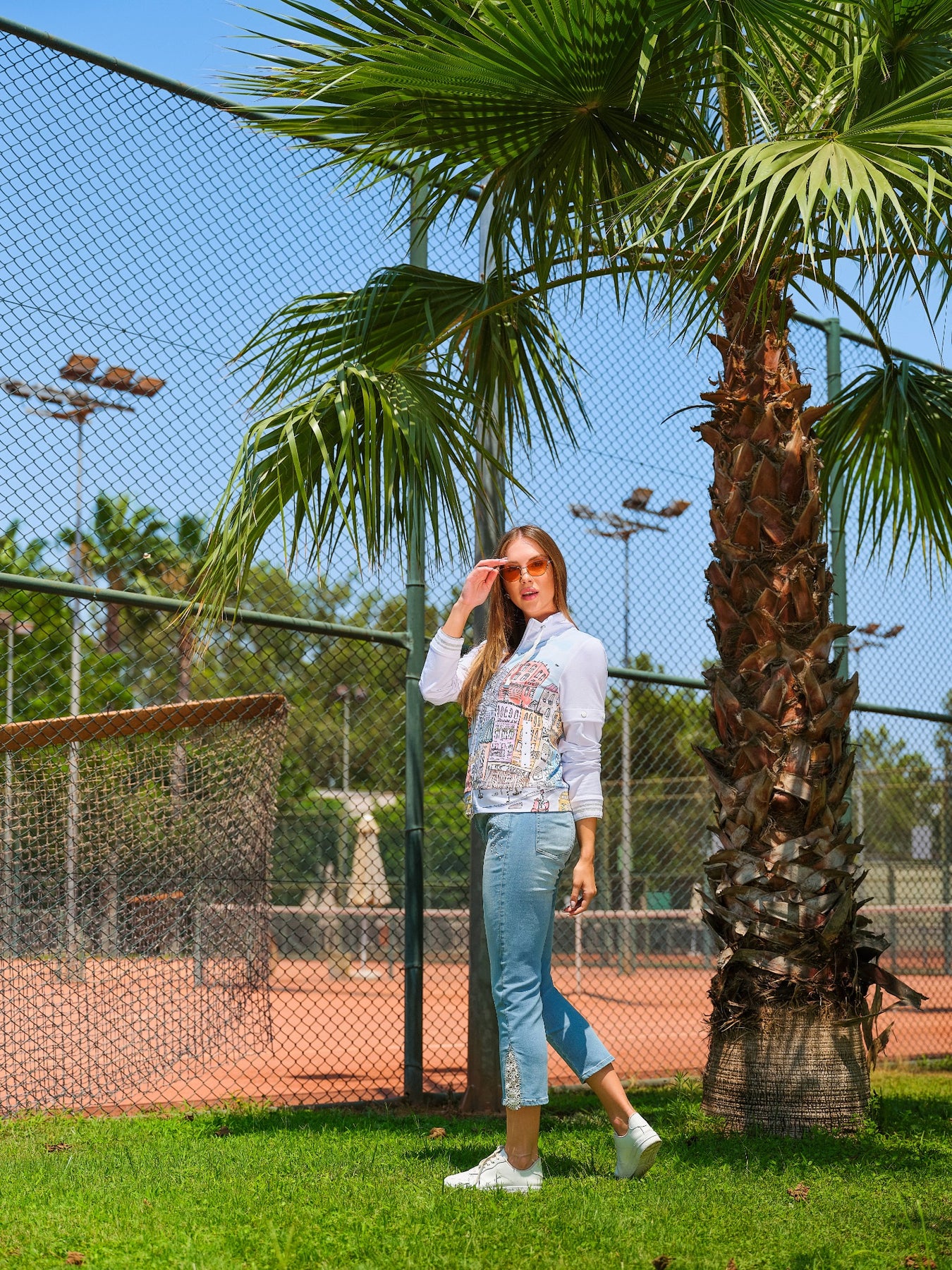 From the City Circus Collection, this zip-up jacket features a lively, sketch-inspired city print that captures the energy of street scenes and summer festivals. The stand collar with drawstring detail adds a sporty edge, while the clean front zip keeps the look sleek and easy.