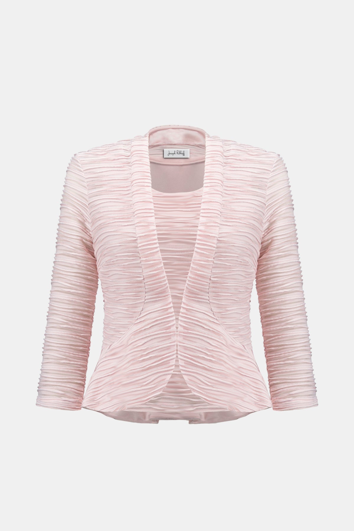 Enhance your collection with this elegant lurex cascade knit set, blending timeless charm and modern sophistication. The stylish cover-up showcases a delicate shawl collar and peplum hem, perfectly complemented by the coordinating camisole featuring a flattering scooped neckline for a sleek, refined look.