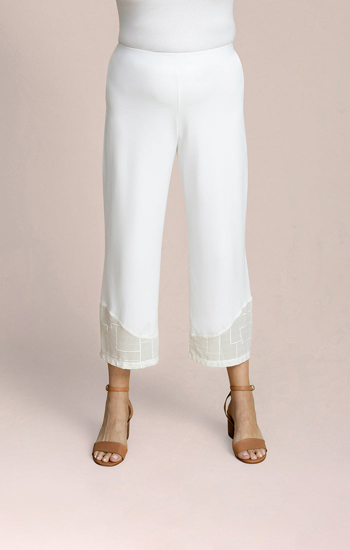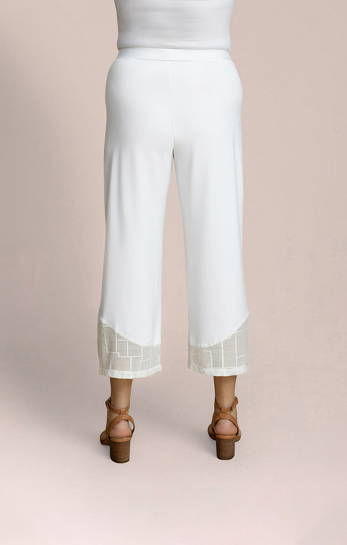 Effortless style meets comfort in these wide-leg crop pants. Featuring a pull-on waistband and relaxed fit, they drape beautifully with a sheer hem panel for a modern edge. The cropped length is perfect for pairing with your favorite footwear, while the smooth fabric keeps you comfortable throughout the day.