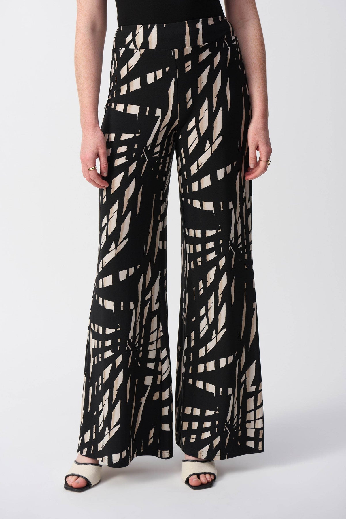 Parfait pour les escapades exotiques comme pour les aventures plus proches, ce pantalon à jambes larges offre un style décontracté. Confectionné dans une maille soyeuse luxueuse, il est doté d'une ceinture profilée confortable et d'un imprimé tropical éclatant qui capture l'esprit du voyage et de l'élégance.