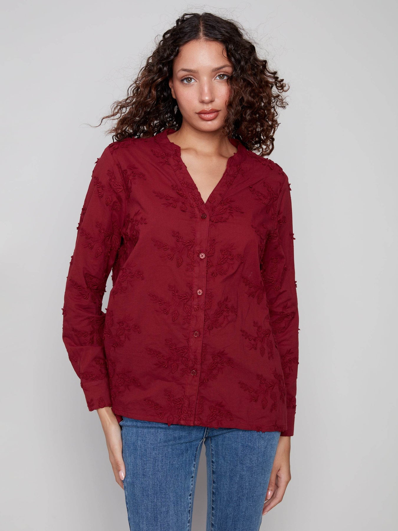 Sublimez votre garde-robe avec ce chemisier boutonné à appliqués floraux. Ses délicats appliqués floraux apportent une touche d'élégance à vos tenues quotidiennes. Les manches longues se terminent par des poignets ajustés, offrant une finition soignée, idéale pour les occasions professionnelles comme pour les sorties décontractées. Conçu pour le confort et le style, ce chemisier s'accorde facilement avec un jean ou une jupe, devenant ainsi une pièce polyvalente de votre garde-robe. Affirmez votre féminité et votre sophistication grâce à des détails subtils et raffinés qui mettent en valeur votre grâce naturelle.