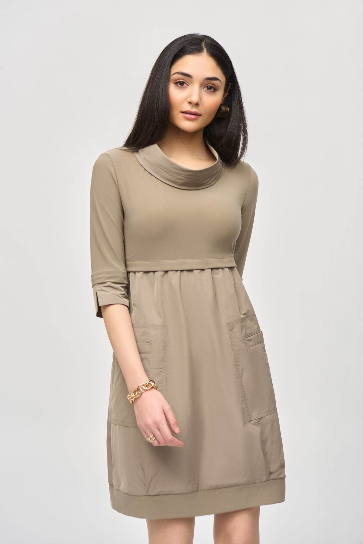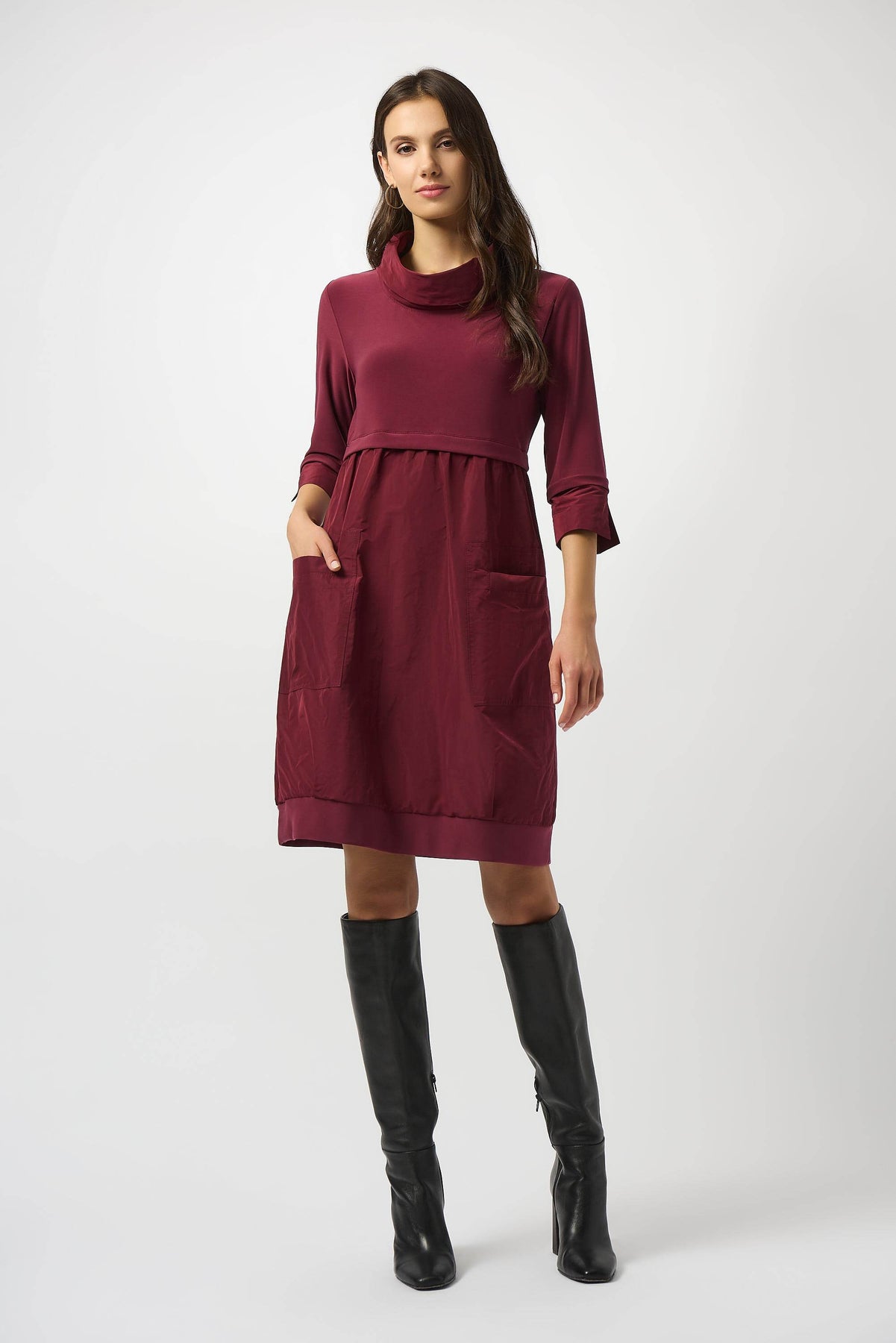 Sublimant votre silhouette grâce à sa taille empire et ses fronces raffinées, cette robe cocon mi-longue respire l'élégance et le raffinement. Confectionnée en tissu Memory luxueux et en maille douce, elle présente des manches trois-quarts à poignets boutonnés, des poches avant et un col montant chic. Un indispensable du prêt-à-porter qui vous assurera confiance et élégance.