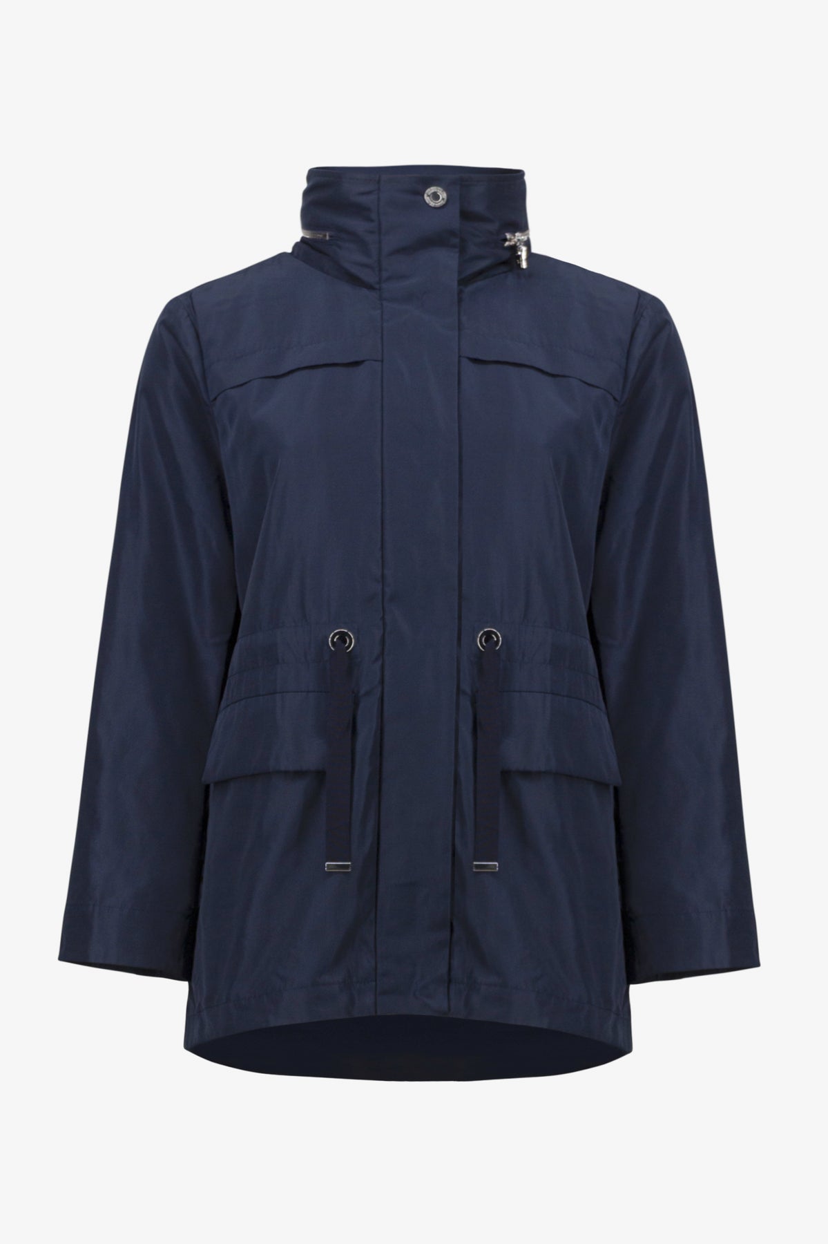 Découvrez un style décontracté avec cet anorak imperméable, conçu pour la vie moderne. Son design épuré comprend une fermeture à pression pratique, une fermeture éclair dissimulée et des finitions raffinées par un cordon de serrage en gros-grain. Des poches à rabat pratiques permettent de garder vos essentiels à portée de main, tandis qu'une capuche astucieusement dissimulée se range discrètement dans le col montant – vous serez parée à toute éventualité. Idéal pour la mi-saison et les journées imprévisibles.