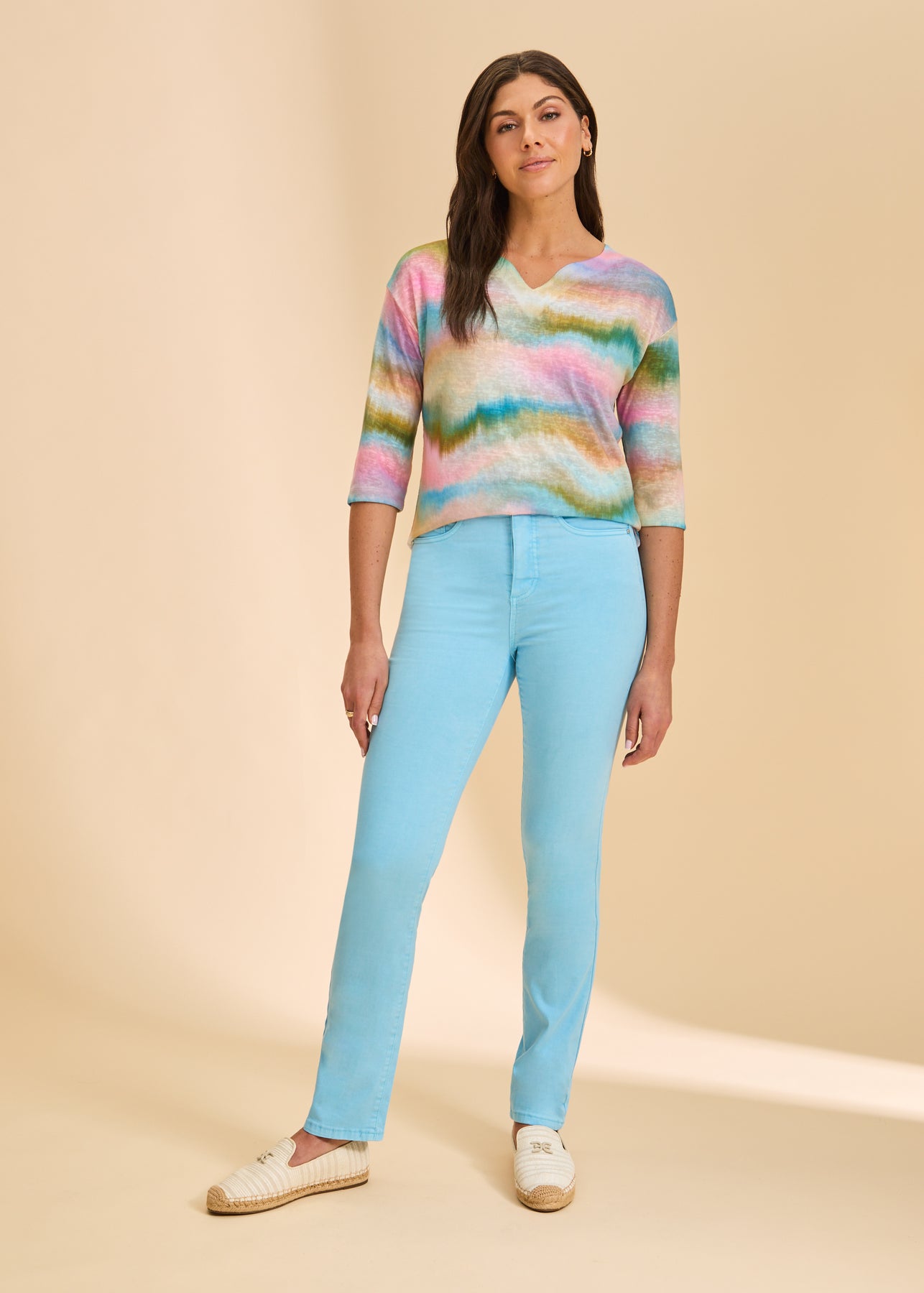 Drop Shoulder Notch Neck Top French Dressing Jeans