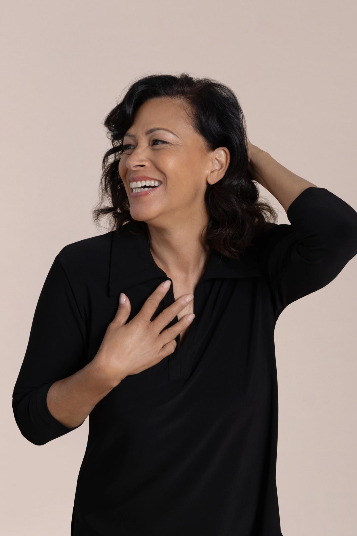 Découvrez un confort et un style incomparables avec notre top Weekender. Doté de manches 3/4, d'un col en V et de fentes latérales, ce top est un incontournable de toute garde-robe.