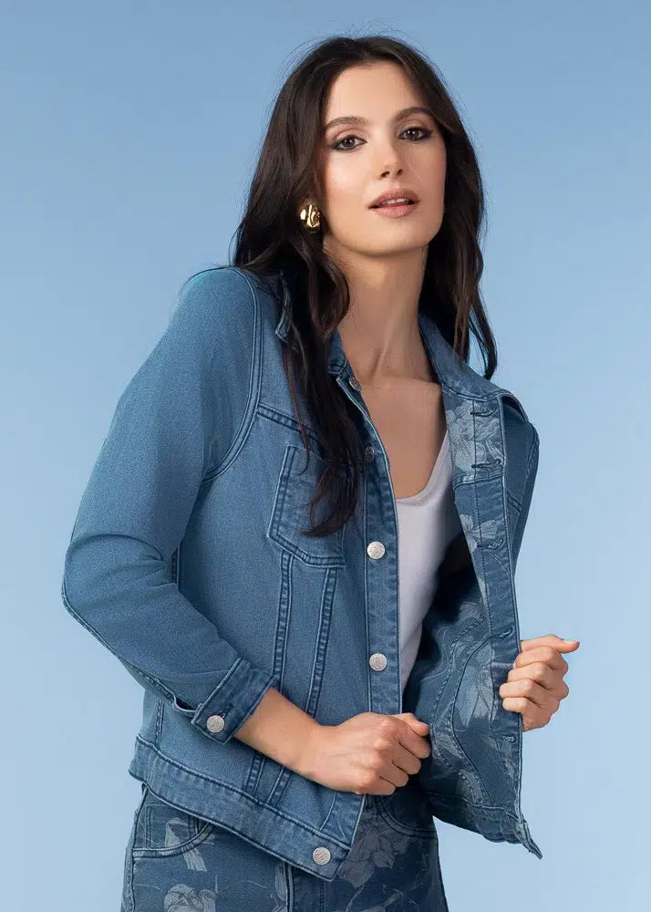 The Bloom Reversible Jacket offers two looks in one—flip between crisp denim and a soft floral print to match your mood. Its tailored, cropped cut flatters your figure while the stretchy fabric moves with you. Layer it over anything for instant style and versatility that works harder than a regular jacket.