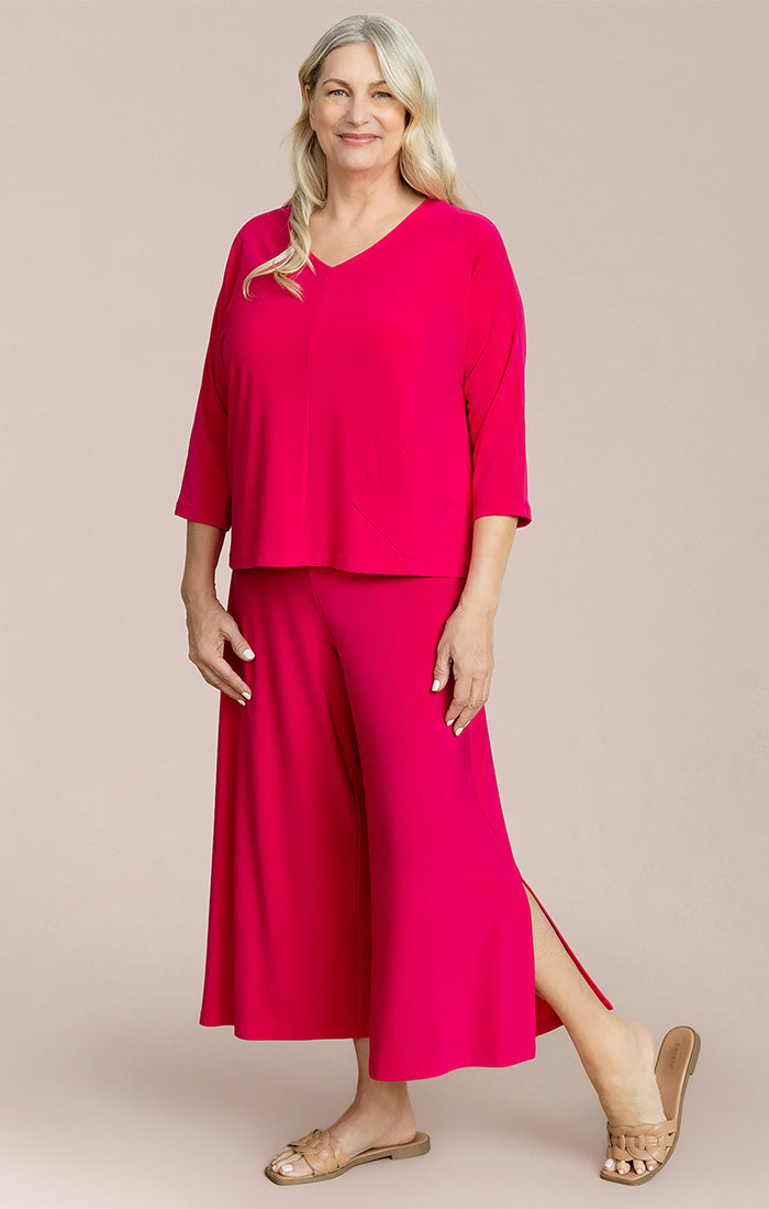 Elevate your everyday style with this effortlessly chic V-neck top, designed with a relaxed silhouette that drapes beautifully over the body. The soft, fluid fabric offers all-day comfort, while the three-quarter sleeves add a touch of modern ease. Its clean lines and versatile design make it perfect for both casual outings and polished looks.