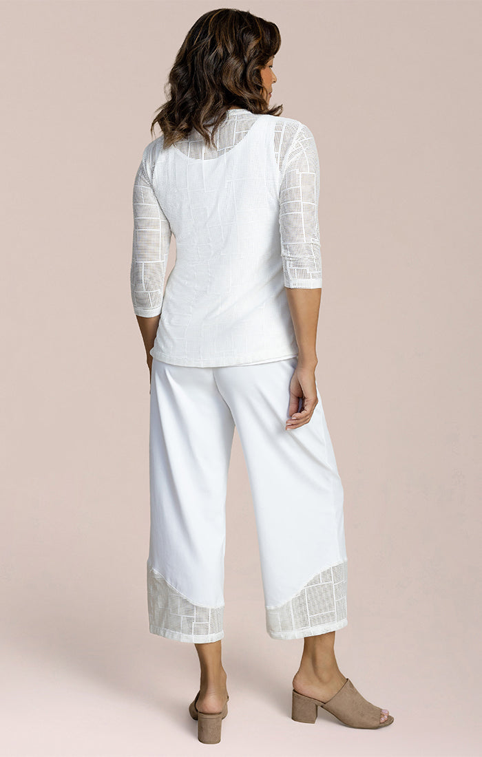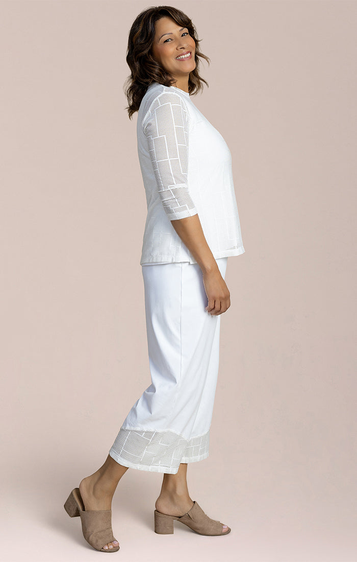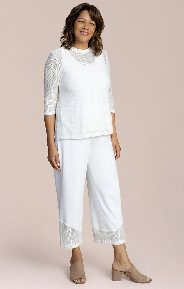 This elegant top blends softness with subtle texture for a refined everyday look. Designed with a lightweight feel, it offers both comfort and coverage. The semi-sheer sleeves add a delicate touch, while the relaxed silhouette drapes beautifully for an effortless fit. Perfect for dressing up or down, this versatile piece pairs seamlessly with coordinating pants or your favorite wardrobe staples.