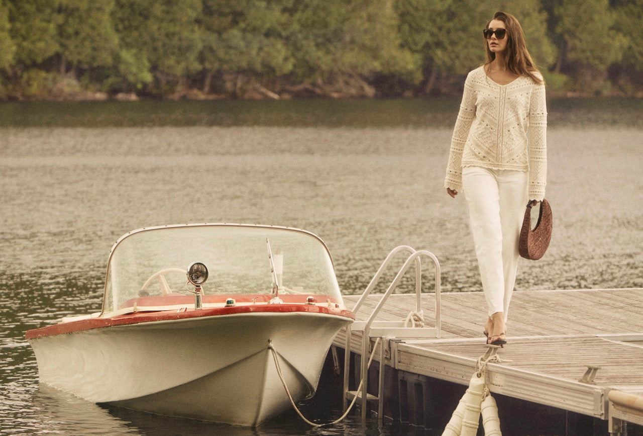 This ivory pointelle sweater combines delicate open-knit texture with subtle metallic accents for an elegant, versatile piece. The scalloped edges and geometric lacework create romantic detail, while the lightweight construction keeps it comfortable for everyday wear. Perfect layered over basics or worn alone, it effortlessly elevates any outfit with understated sophistication.