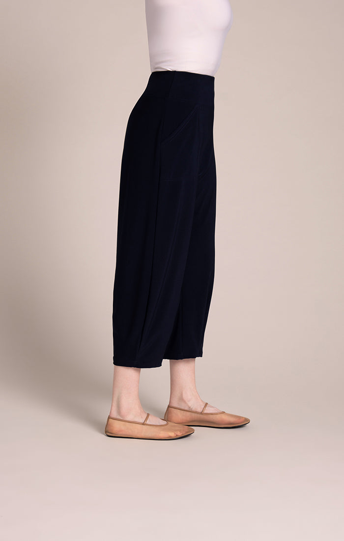 Elevate your style with our Narrow Lantern Pants, designed to pair flawlessly with shorter tops that highlight the high yoke waistband. With an ankle length and a wide, lantern-shaped leg, these pants exude sophistication. Featuring stitched-down side pockets and a slightly slimmer fit than our regular Lantern Pants, these pants are the epitome of luxury.