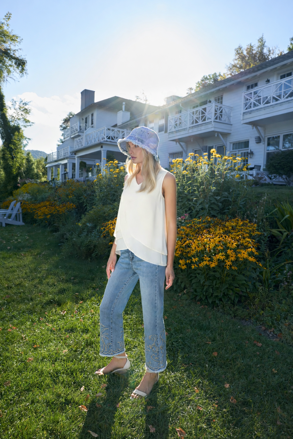 Wide-leg jeans featuring shimmering crystal embellishments that add just the right amount of sparkle. The high-rise waist and elongating silhouette create a flattering, sophisticated look that works for both special events and elevated everyday styling. Classic five-pocket construction meets modern glamour in these versatile statement jeans.-