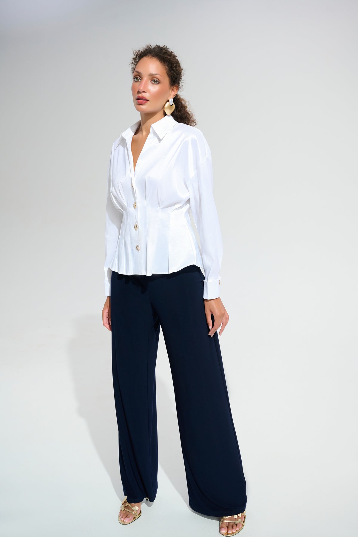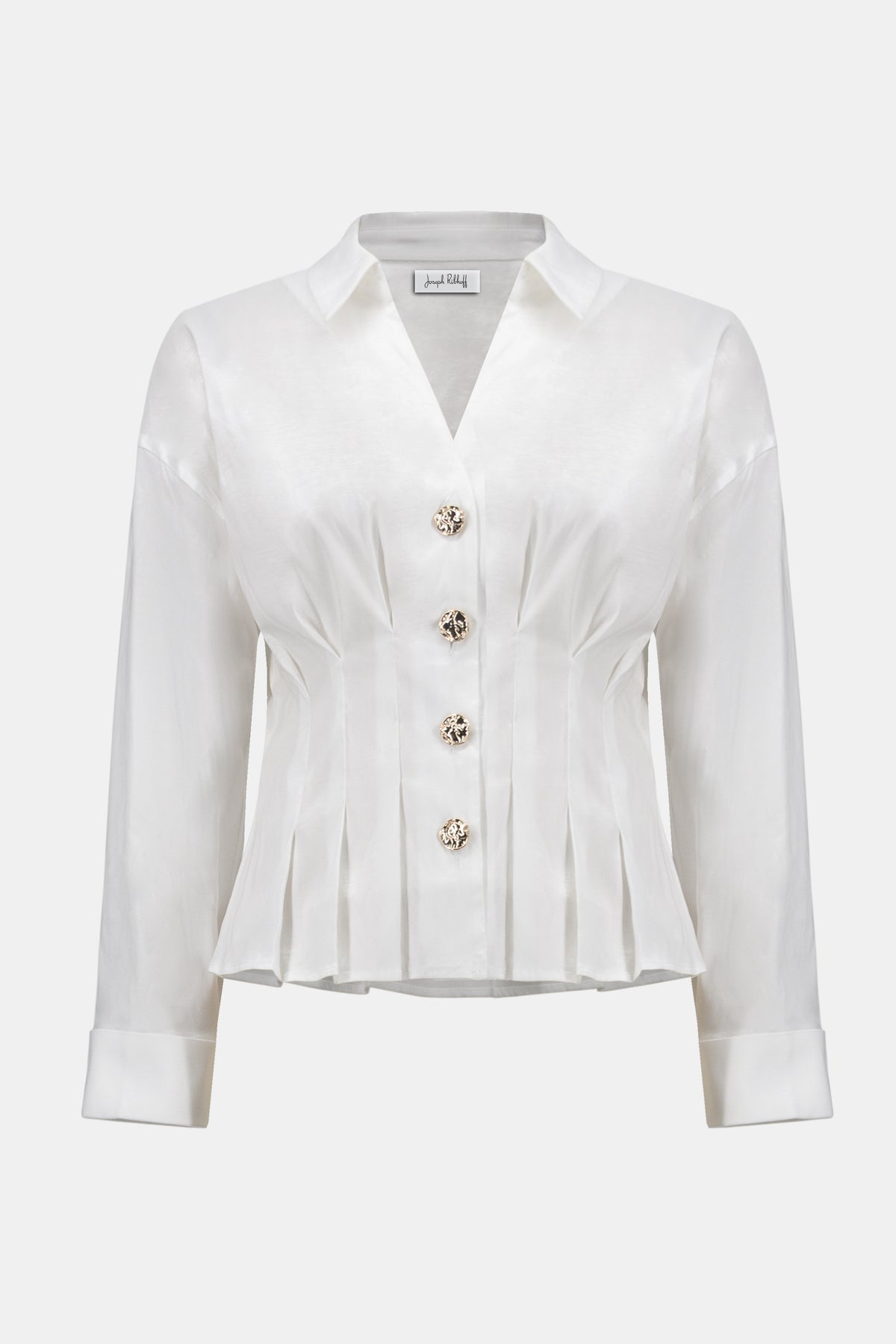 Signature | Stretch Taffeta Fit And Flare Blouse With Chain Link Button Cuffs Joseph Ribkoff