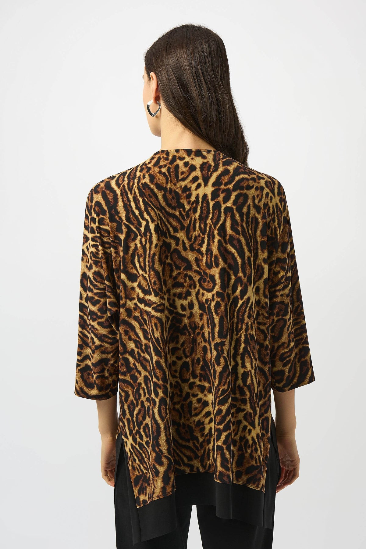 Indulge in the modern and chic design of this stunning silky knit tunic. The sleek zippered neckline and three-quarter dolman sleeves perfectly complement the boxy silhouette for a polished look. The high-low hem adds graceful movement to your every step, while the contrast band detail and captivating print add a bold and elegant touch. Elevate any occasion with this effortlessly stylish piece.